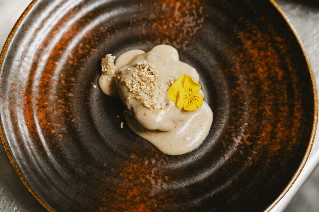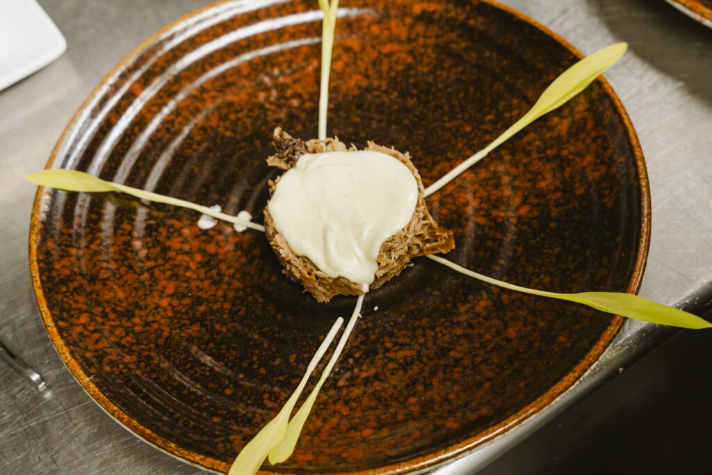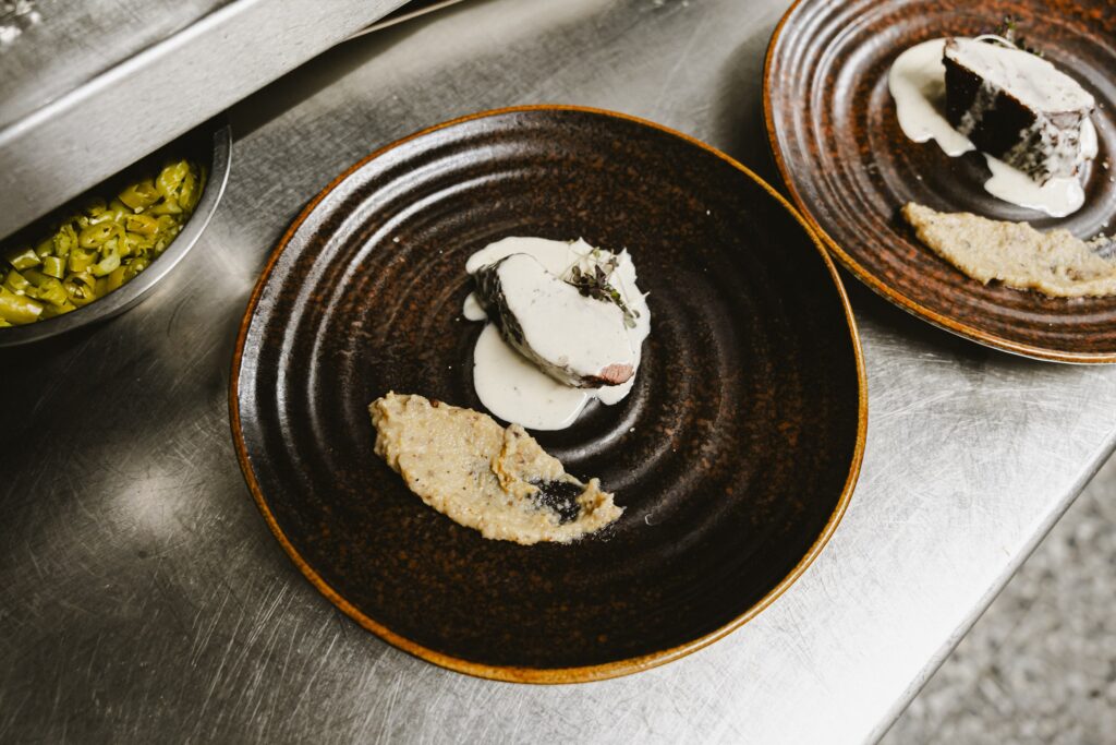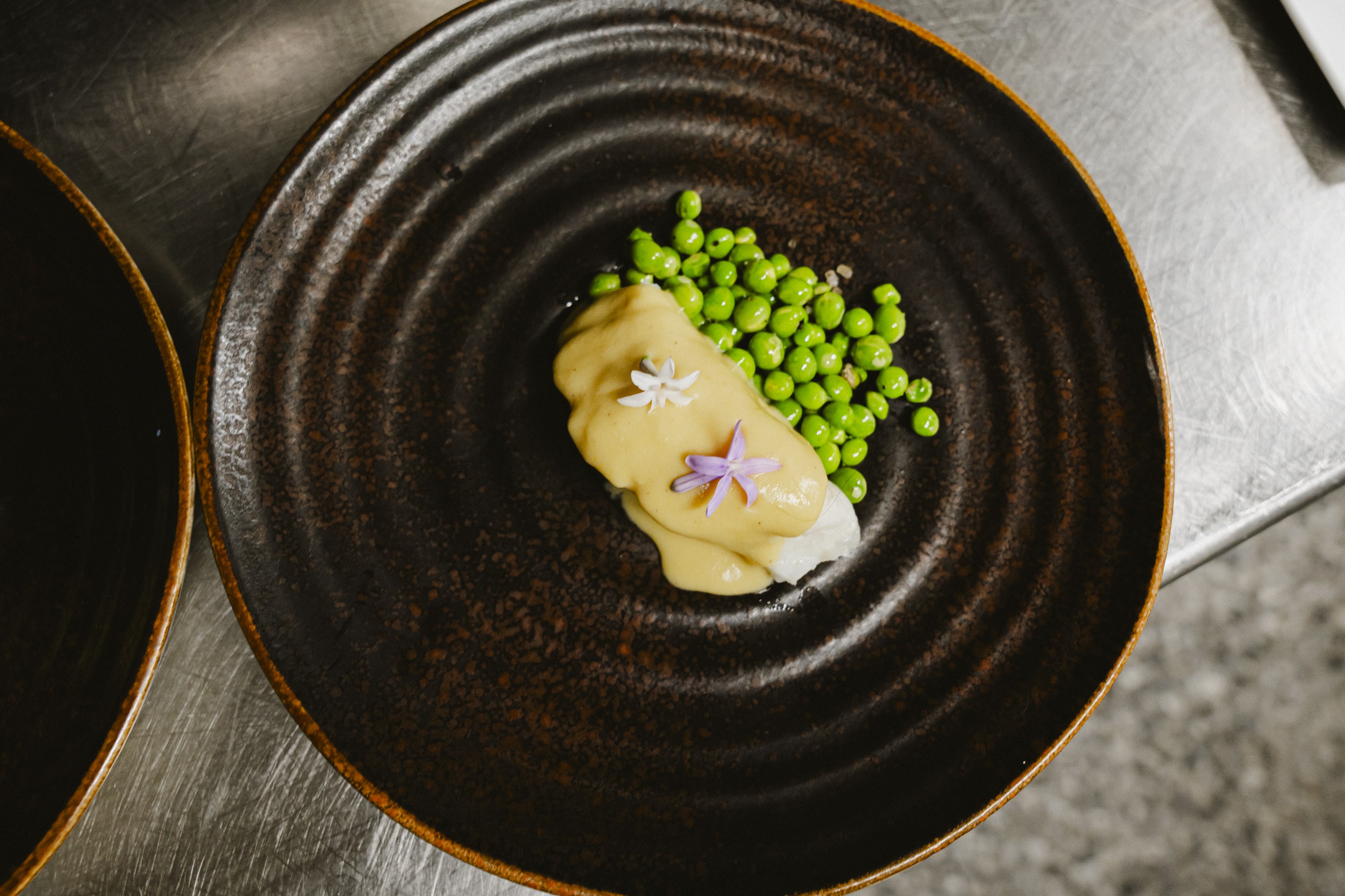 • Bacalao sobre crema de brotes de arvejas y arvejas a la brasa